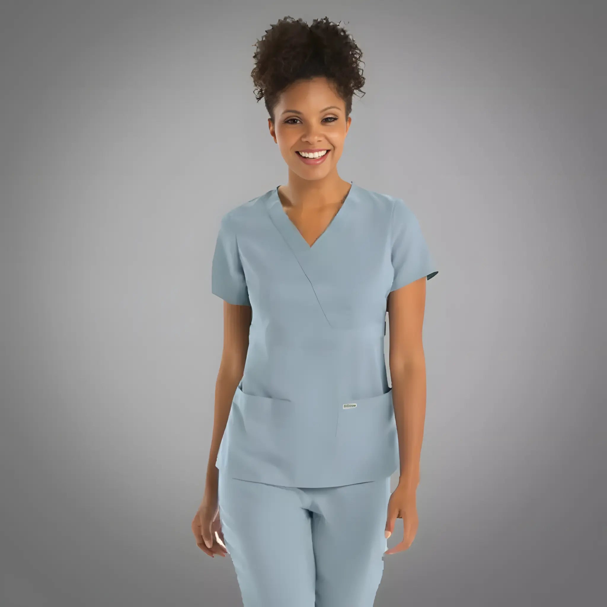 Product Details & Fit B fashion Meets Comfort: This fashionable V-neck scrub top features moisture-wicking...
