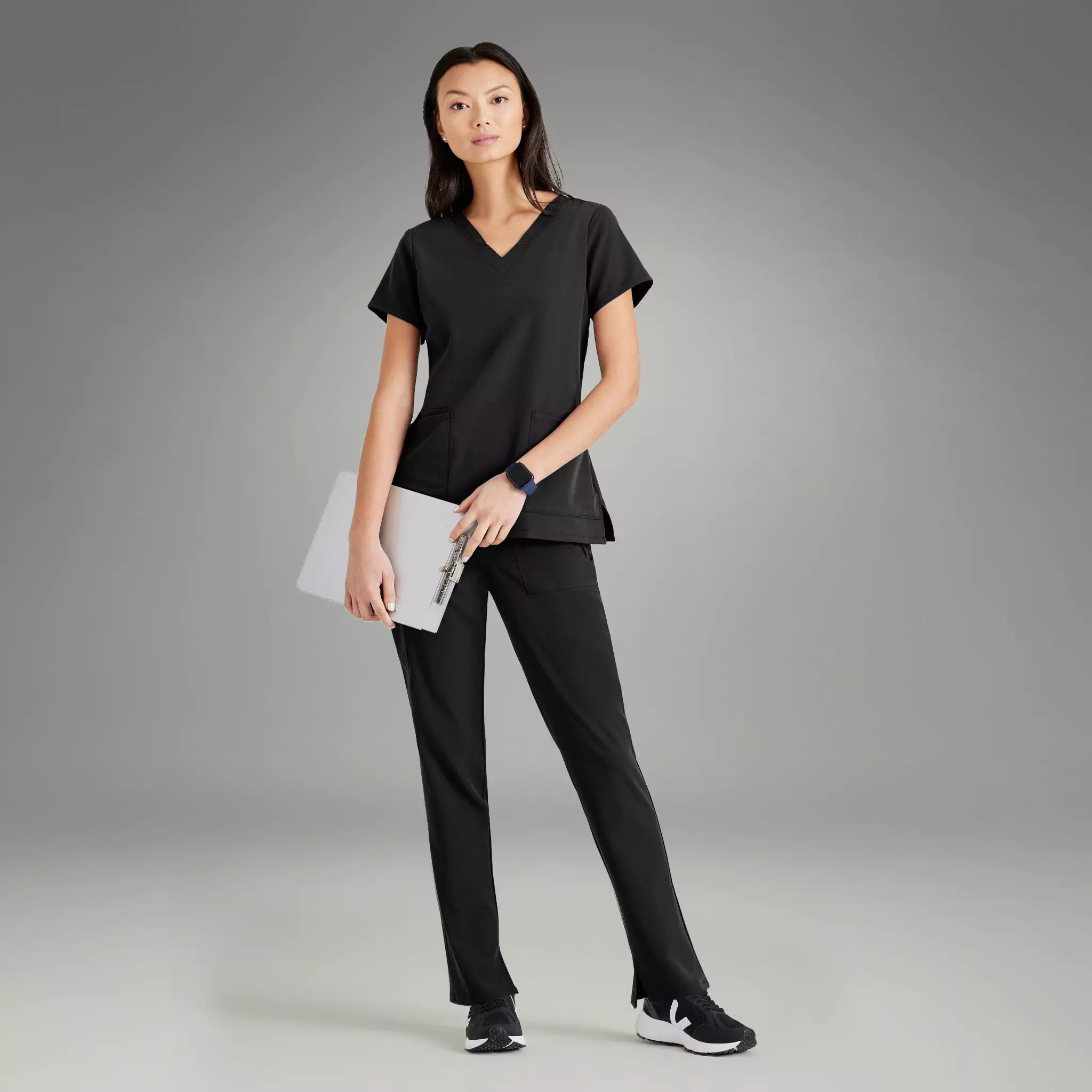 Luxe360 fabric Basic v-neckline 4-pocket Tool strip detail at front pockets Wrinkle release Moisture wicking...