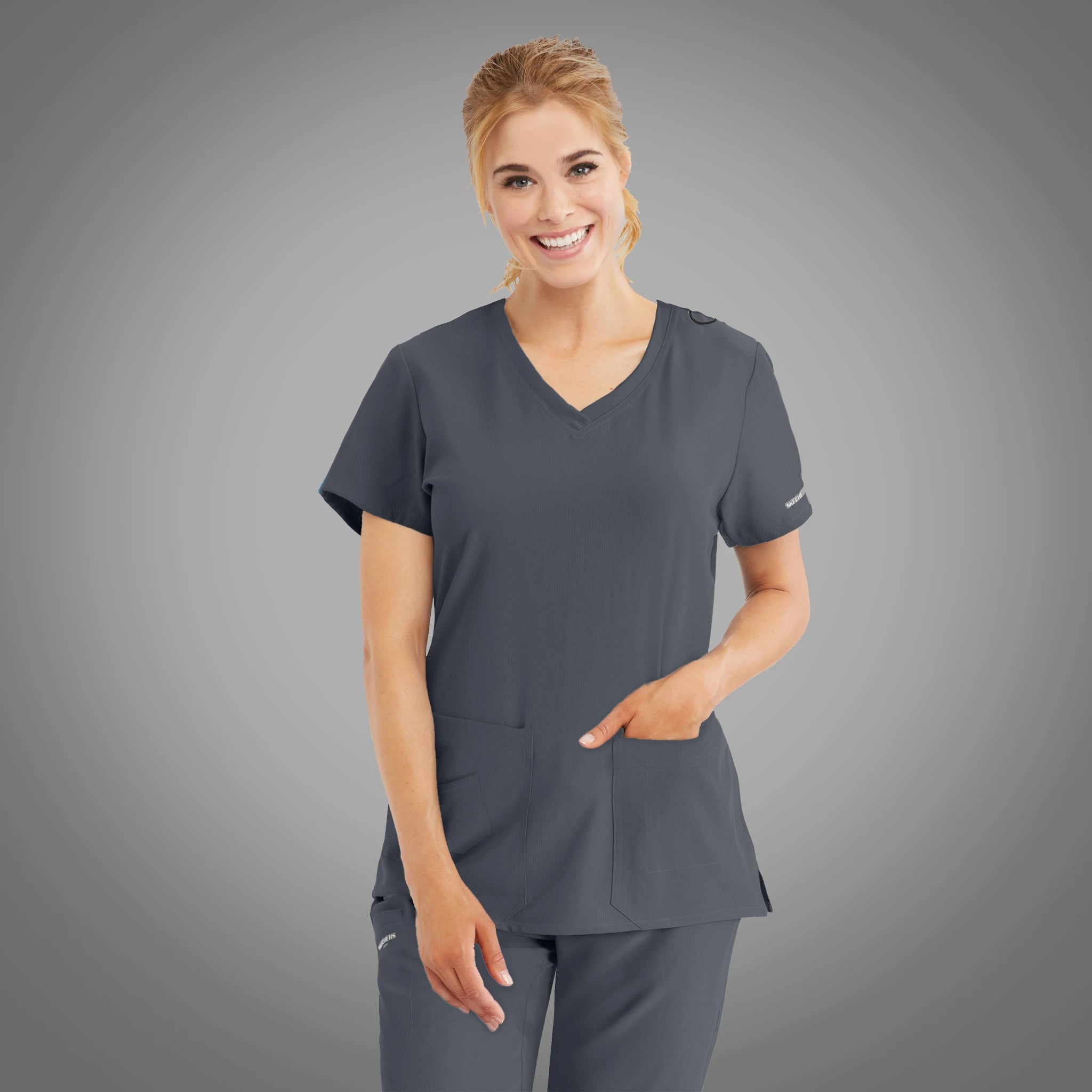 SKT025 V بلوزة سكيتشرز للنساء ذات 6 جيوب ورقبة على شكل حرف